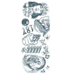 Black & Gray-Style Skull & Roses Temporary Tattoo, 4in X 10in