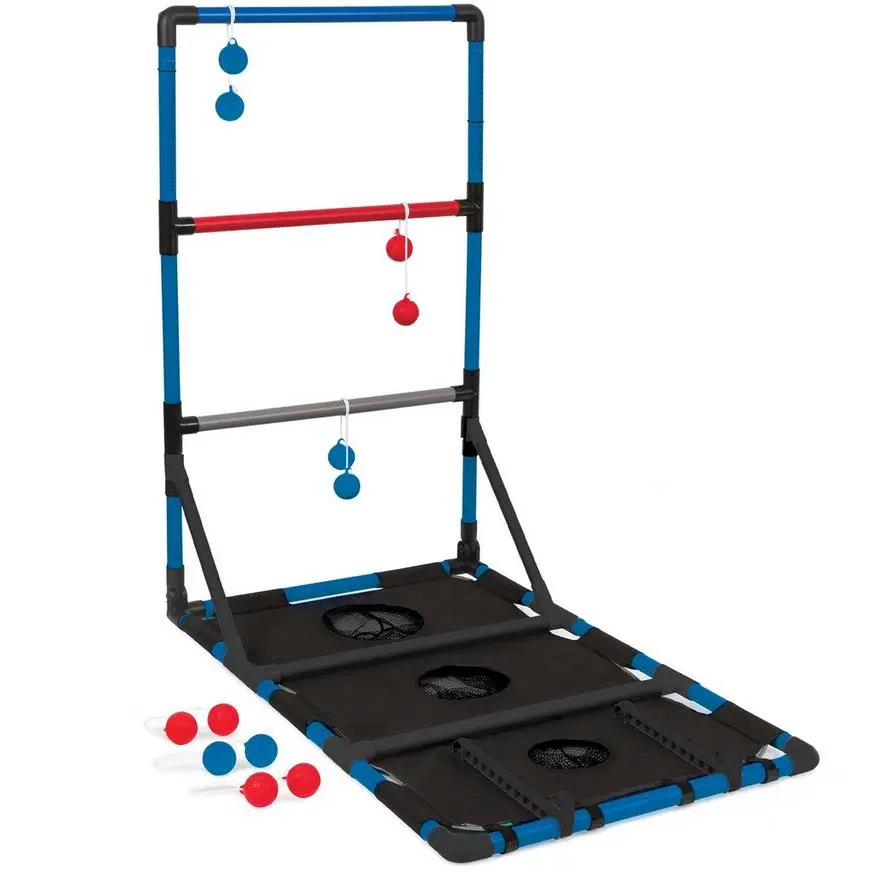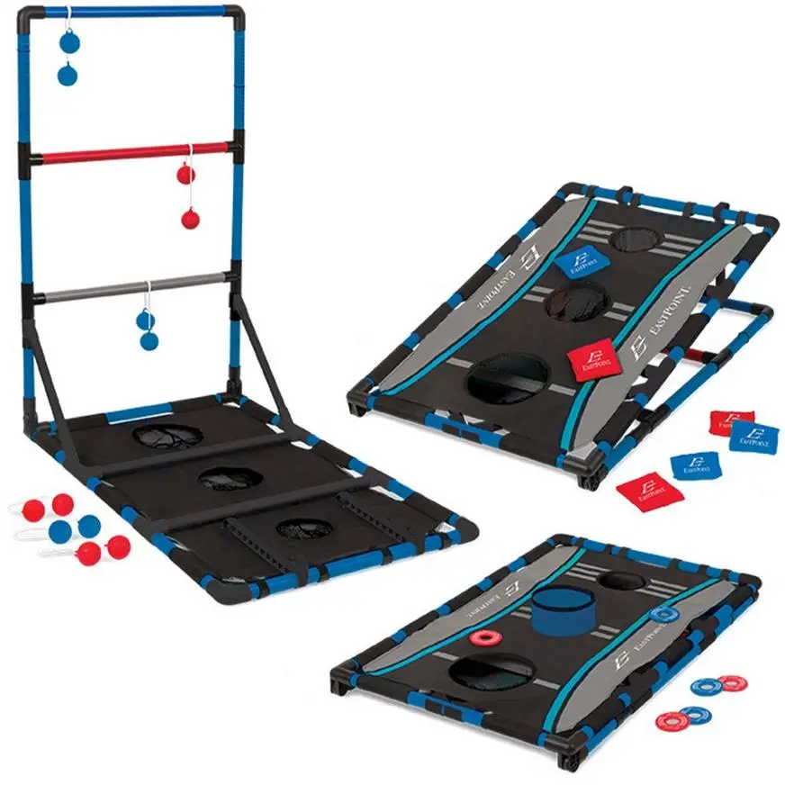 Ladderball, cornhole, and washers. You can play them all with this combo game set! The target is easy to set up and can be switched from game to game in seconds for all their favorites. It features all-weather construction, perfect to keep the crew entertained when tailgating and camping.