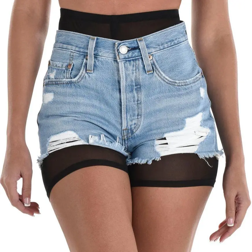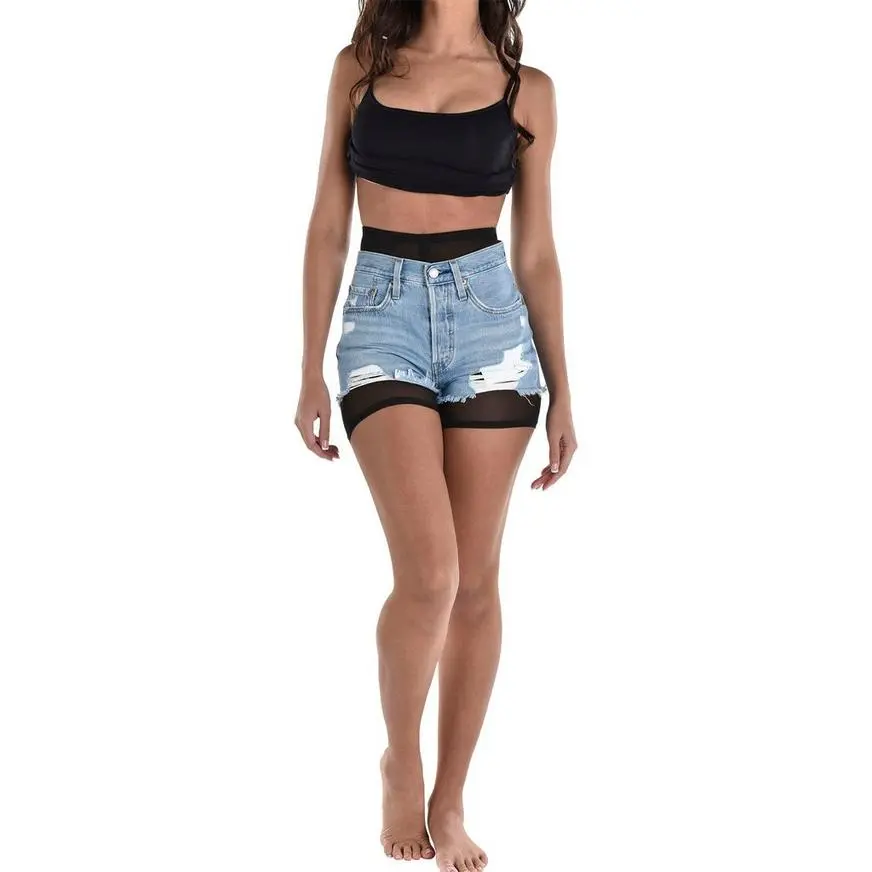 Adult Sheer Black High-Waisted Mesh Bike Shorts product details: