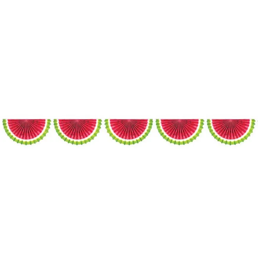 Your summer party decorations will look sweet with a Hello Summer Watermelon Bunting Garland! This paper garland features bunting designed to look like slices of watermelon. You can use this watermelon garland to decorate the snack tables, the front porch, or anywhere else in the house. Add a decorative touch to the rest of your summer party decorations with this bunting garland!