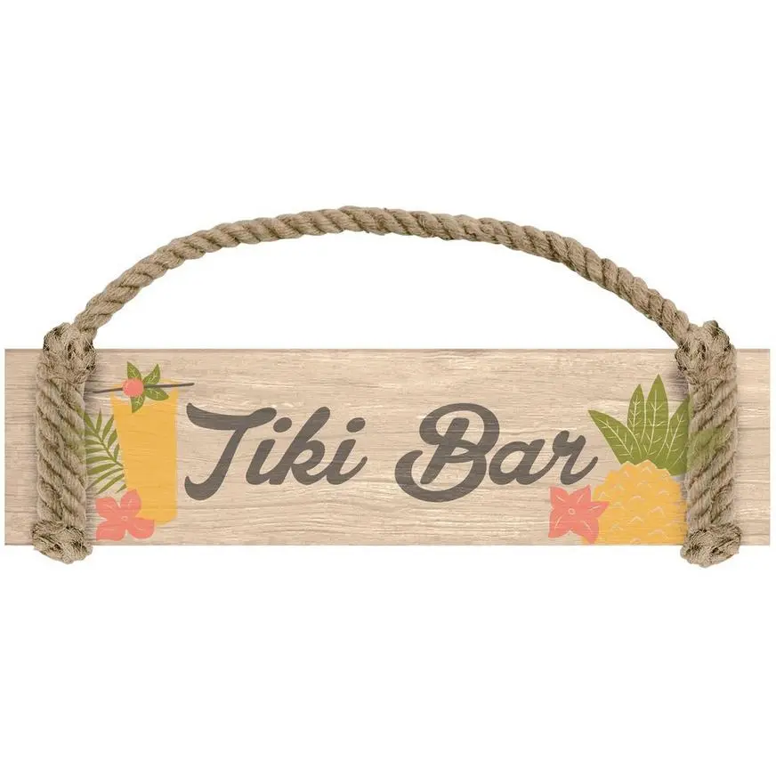 Use this Tiki Bar sign to transform your space into an island paradise. It’s made with natural wood and rope for a handmade look and has a pineapple and cocktail illustration for that tropical feel.
