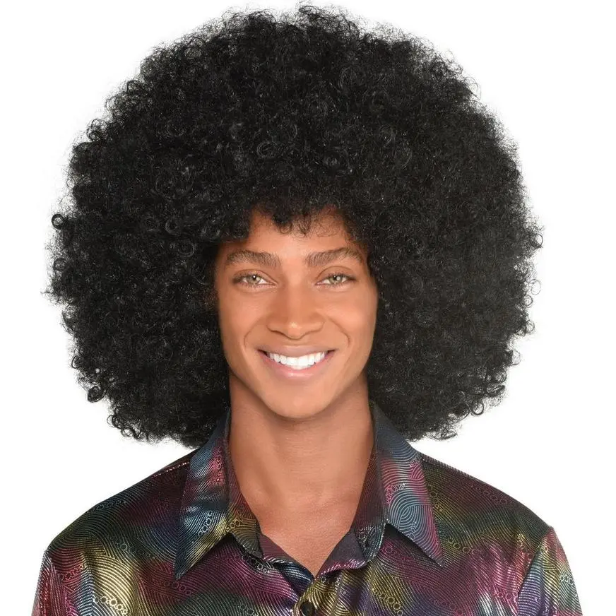 We’re not kidding! The Biggest Curly Wig Ever is so big that it has its own zip code. This jumbo size black Curly Wig offers warmth in the winter, shade in the summer, and is a monument to 70’s tonsorial excess. 100% synthetic fiber. One size Biggest Curly Wig fits most teens and adults. Wig cap recommended (sold separately).