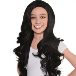 This long black wig is how you show your team spirit, spice up your Halloween look, or complete your cosplay costume. The wig is straight with lush curls at the bottom for a glamorous look. It fits kids and adults.