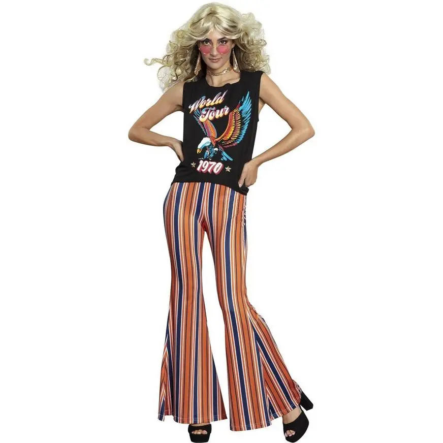 Adult Blue & Orange Striped Bell Bottom Pants product details: