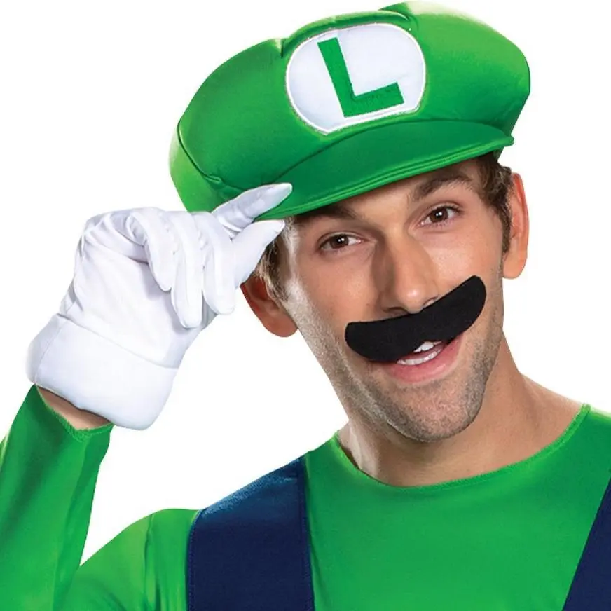 More on Adult Luigi Costume: You can 1up everyone else this Halloween in this Luigi Costume for adults! The costume includes a blue overall jumpsuit with large yellow values and an attached green long-sleeve shirt. Finish the outfit with the embroidered green “L” hat, white gloves, and a black self-adhesive moustache. Bowser will meet his match once you are suited up in this Luigi costume! Review the size chart for additional information. Shoes and socks not included.