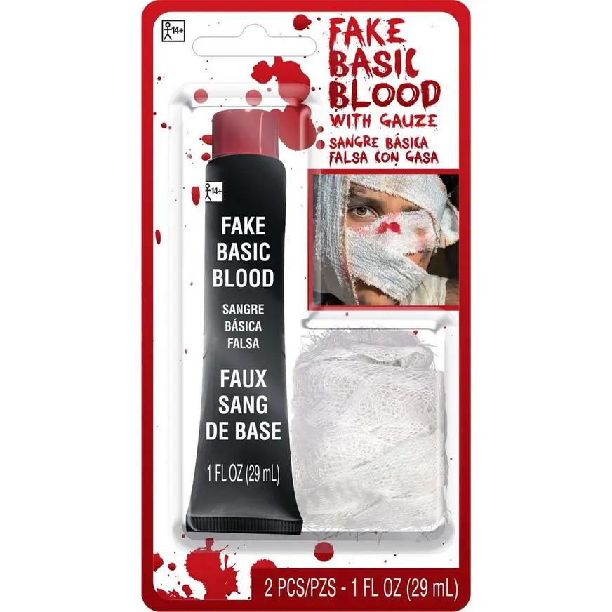 Turn into a twisted hospital patient this Halloween with this Fake Blood Makeup Kit! This makeup kit includes a tube of prop blood designed to look just like real blood. The blood is easy to apply and take off and also comes with white gauze. Show up to the costume party wearing this fake blood and gauze as a part of your hospital patient costume, zombie costume, or any other gory costume idea!