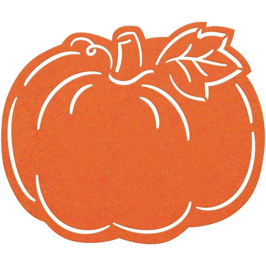 Pumpkin on pumpkin! Serve up pumpkin treats on this placemat. This Felt Pumpkin Placemat features a pumpkin design with white print for the finer details. Add a touch of warmth to your Thanksgiving or fall-themed celebration.