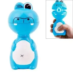 It’s the toy pet that blows bubbles! This this plastic bubble blowing pet looks like a happy blue dinosaur and releases bubbles when its mouth is open. It’s refillable and comes with 2oz of bubble solution.