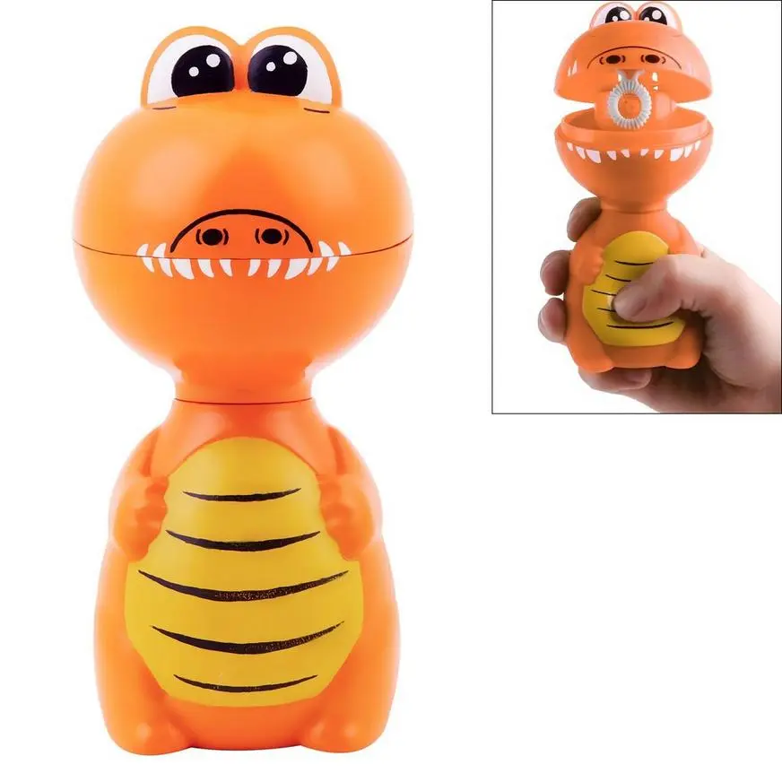 It’s the toy pet that blows bubbles! This this plastic bubble blowing pet looks like a happy orange dinosaur and releases bubbles when its mouth is open. It’s refillable and comes with 2oz of bubble solution.