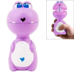 It’s the toy pet that blows bubbles! This this plastic bubble blowing pet looks like a happy purple dinosaur and releases bubbles when its mouth is open. It’s refillable and comes with 2oz of bubble solution.