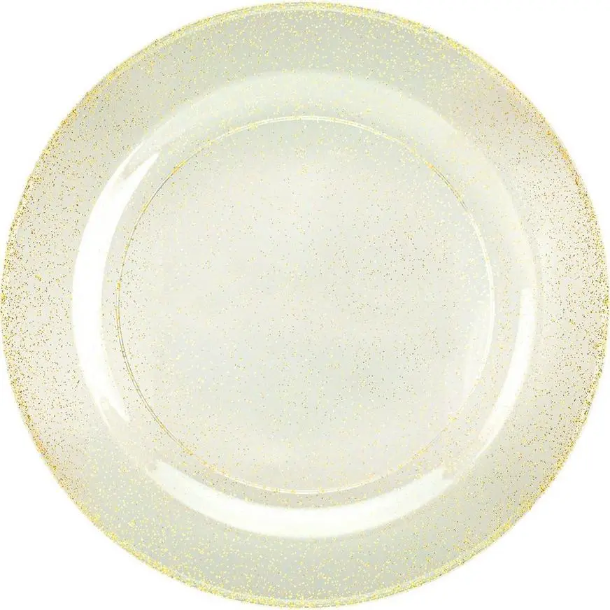 Add some shine to your table with premium plastic plates. Each white plate features a scattered gold glitter design that adds sparkle to your tablescape. Set one down at each place setting or stack them up on your buffet table so guests can help themselves. Round glitter plates are perfect for holiday parties, birthdays, or fancy barbecues.
