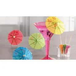 Dress up summer drinks and appetizers with Multicolor Parasol Party Picks. The parasols deploy like real umbrellas and sport delicate floral patterns in six colors for a striking display.