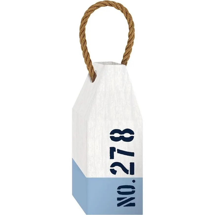 This fiberboard decoration is made to look like a buoy that helps ships navigate ocean waters. The “No. 278” buoy sports classic seaport colors: a muted tone of blue at the bottom with the look of weathered grayish-white wood above it. Hang this buoy up by its attached rope to guide guests to your summer party or display it as an everyday decoration in your backyard.