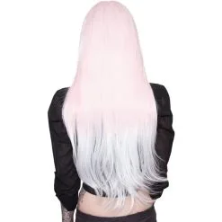 Get the hair style you need for your cosplay character or Halloween costume with this ombre wig! The wig features long hair that descends past the bust and curtain bangs for an artsy cool look. Its color fades from light pink at the top to white at the bottom.