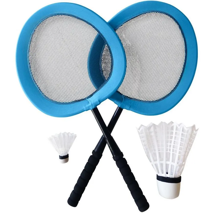 Get a game of badminton going at your party with a Badminton Set! This set includes two black and blue badminton rackets and a white shuttlecock. You can use this set at a summer party, at the beach, or anywhere else. Your friends and family will have fun outside while taking turns playing badminton with this set!