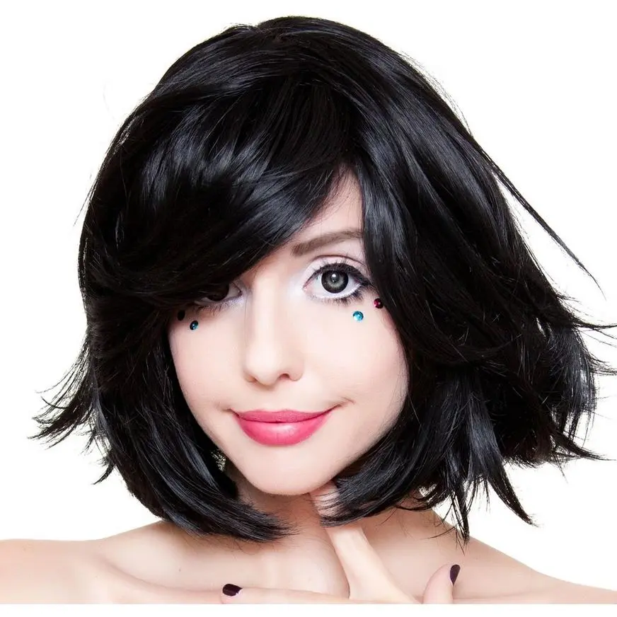 You’ll turn heads left and right at the costume party when you accessorize your Halloween costume with a Stylish Short Black Wig! This wig features short black synthetic fiber hairs styled in a messy way. You can use this short black wig to accessorize your heroine costume, pop star costume, or any other costume idea. Walk into the Halloween party looking extra stylish by wearing this wig! Shirt and gemstones not included.
