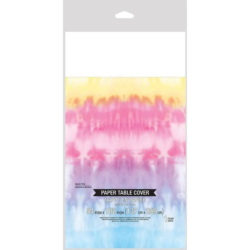 Set a groovy table for your celebration with the Tie-Dye Party Table Cover. This paper table cover features a colorful tie-dye design on the skirt and a solid white center to display your table settings. With its attached plastic backing, it’s perfect for a 60s-themed party inside or outdoors!