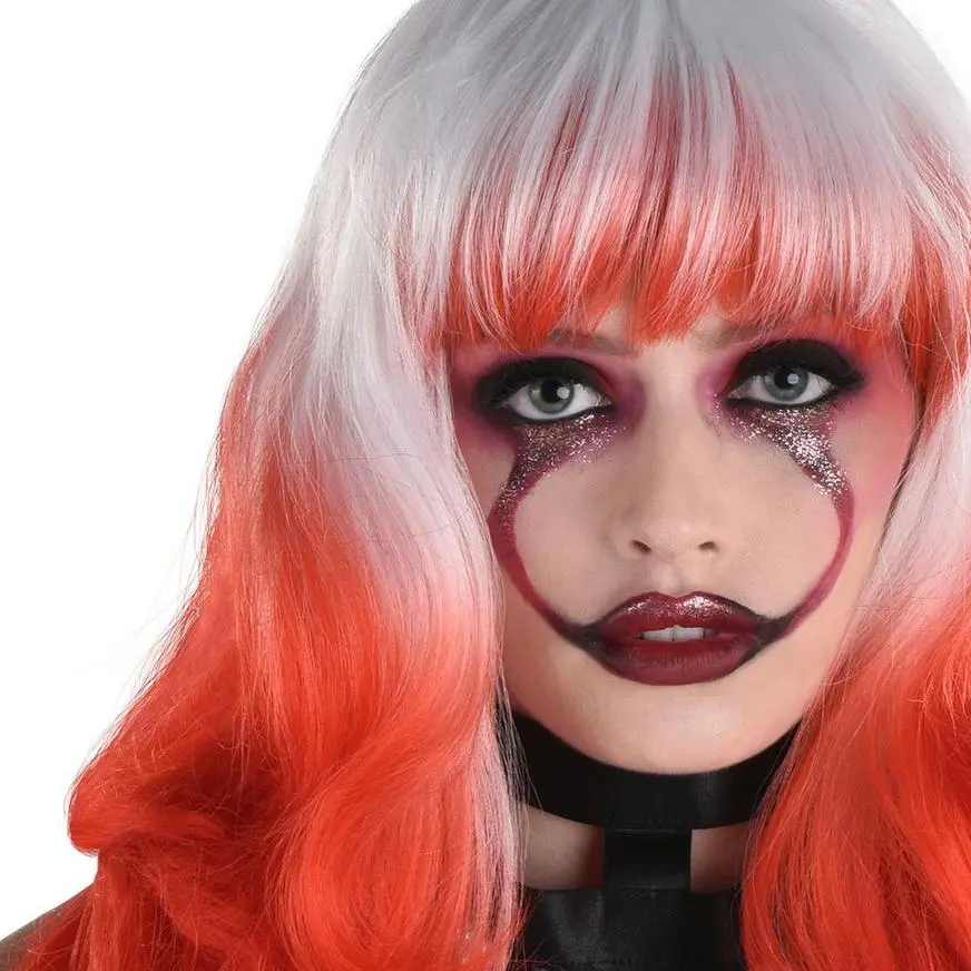 Perfect your Halloween or cosplay look with this edgy wig. It features a full fringe, a white base that blends into a vibrant red, and is styled into loose waves.