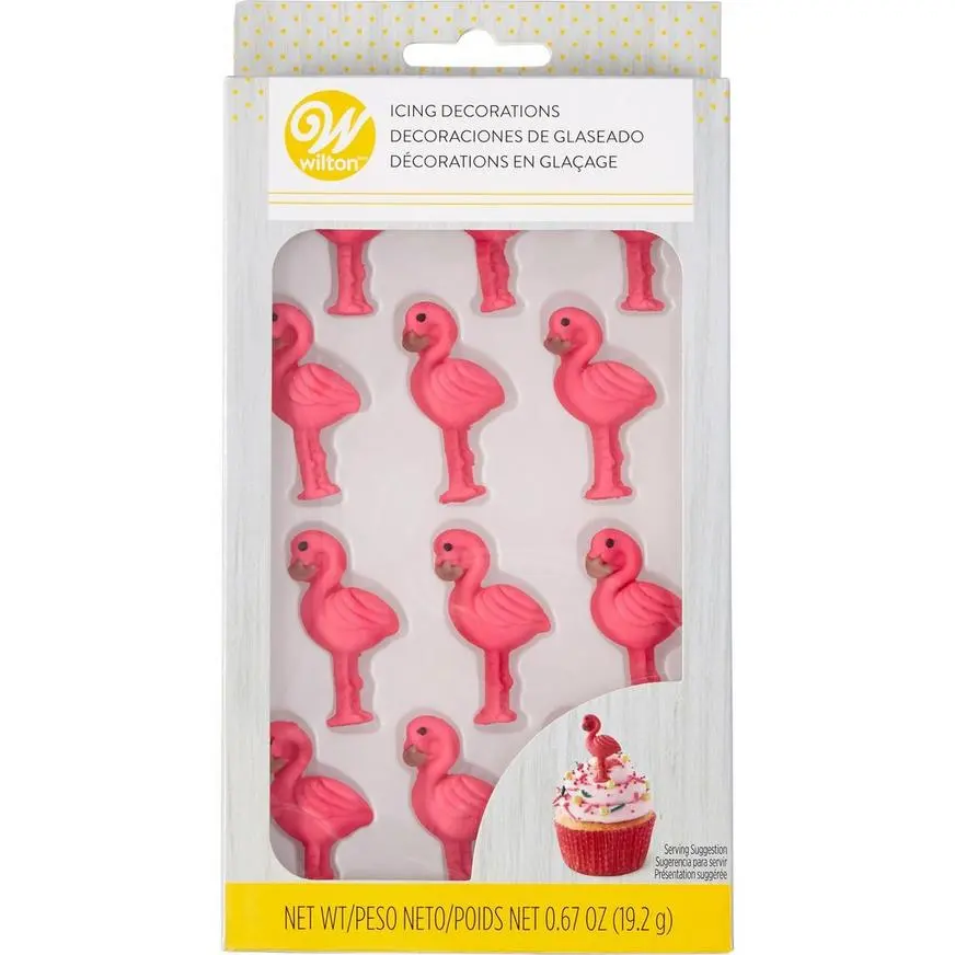 Top desserts with a tropical flair using these Wilton Flamingo Icing Decorations! These icing decorations are shaped like flamingos and feature a bright pink color, just like the birds. Bake up your favorite cupcakes, cover them in icing, and place these sugary treats on top. Use these dessert decorations to top cakes, cupcakes, and other desserts for a tropical-themed party!